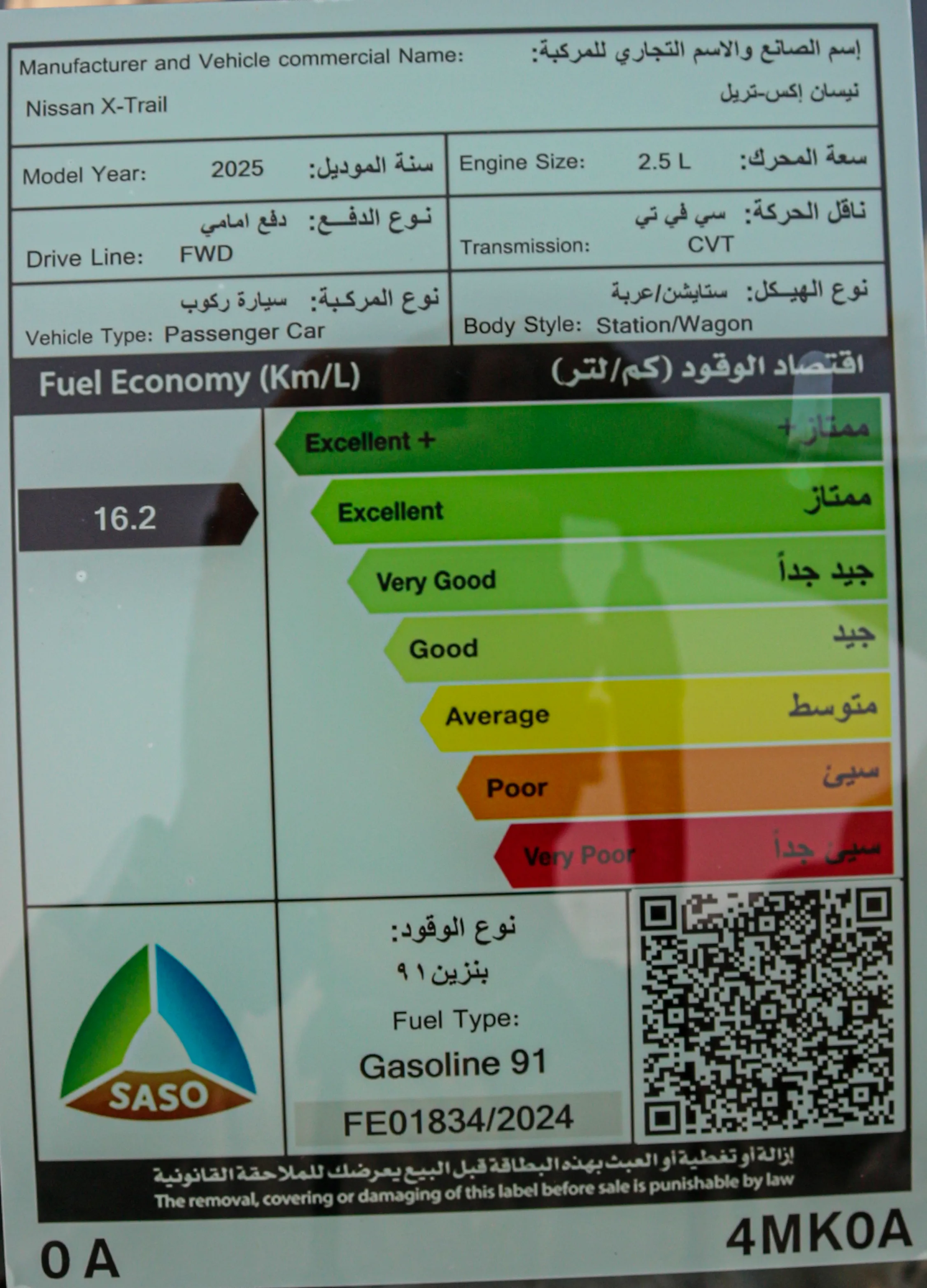 ناقل الحركة: CVT • الوقود: